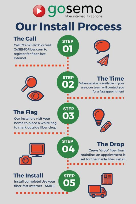Click Zones/Service Area to see if your area is ready for service. Click Products & Pricing to view costs for Internet and phone. Click News & Updates and follow the GoSEMO Fiber Facebook page to stay updated on all things GoSEMO. Sign up for service or preregister through the link here.